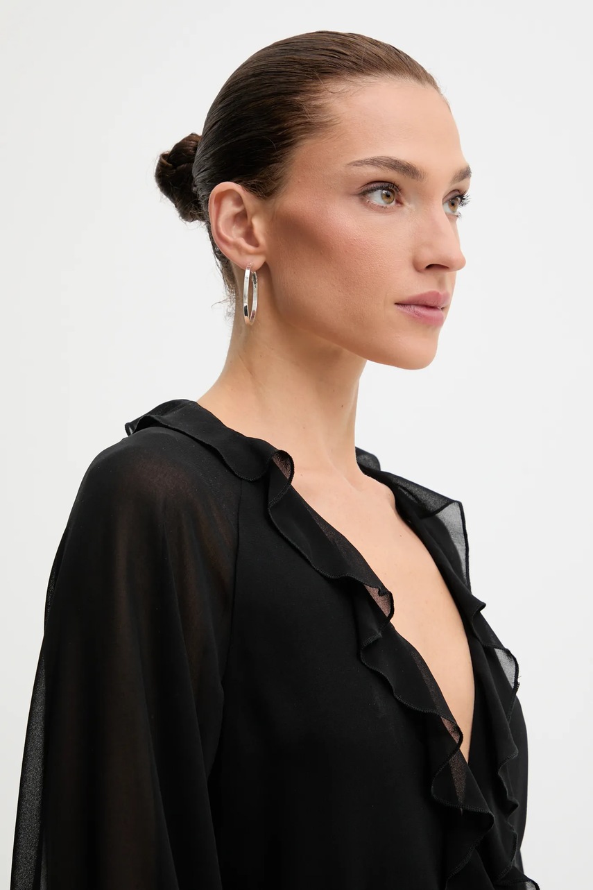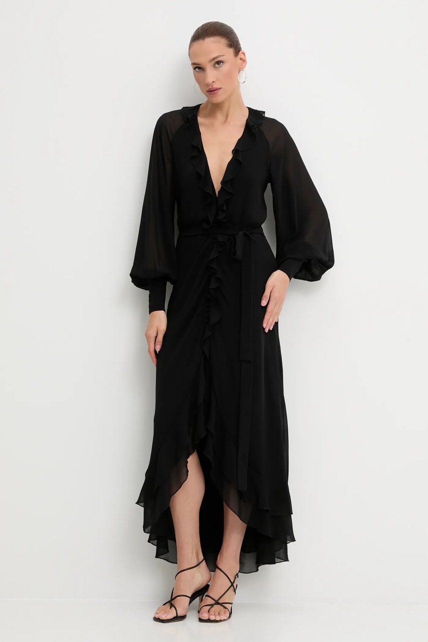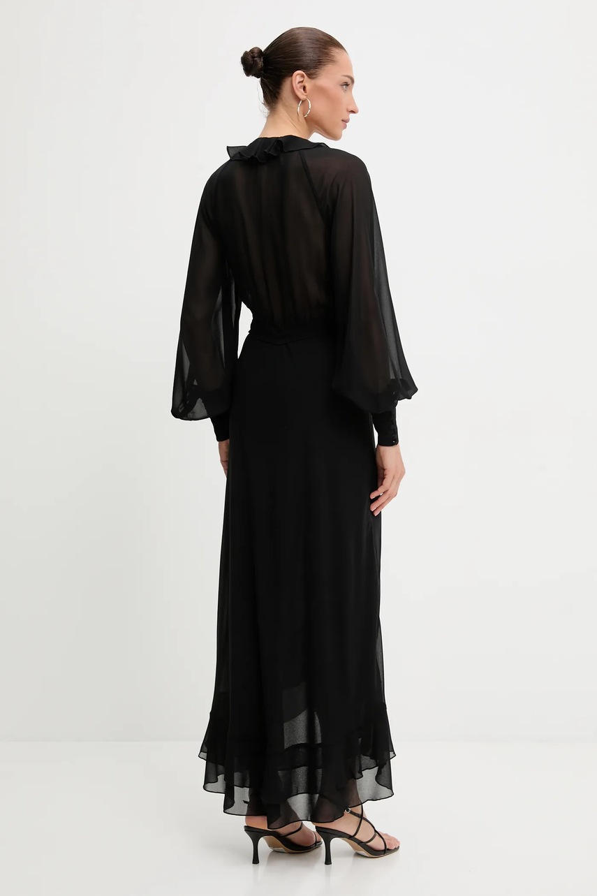 Bardot sukienka kolor czarny maxi rozkloszowana 59944DB