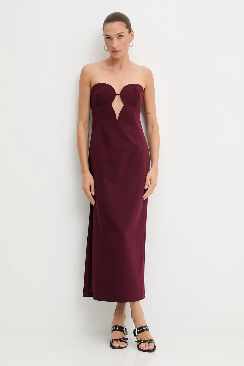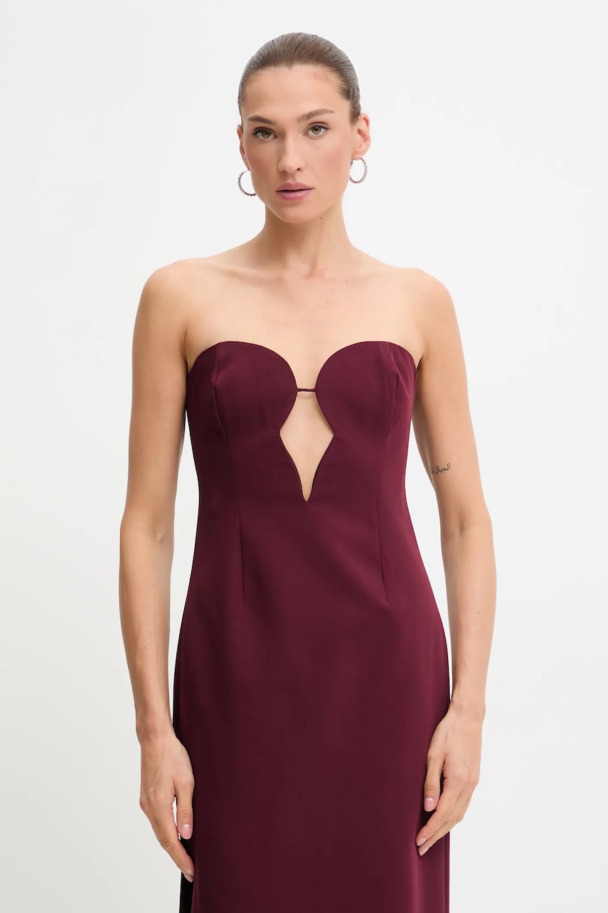 Bardot sukienka kolor bordowy midi dopasowana 57941DB3