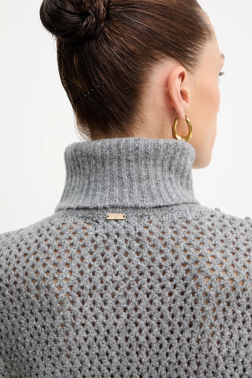 Fracomina sweter damski kolor szary z golfem FS25WT7009K45701