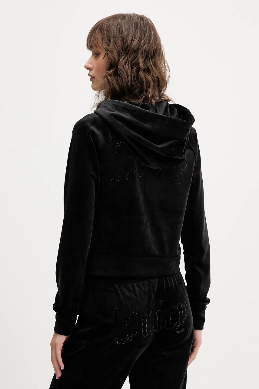 Juicy Couture bluza welurowa damska kolor czarny z kapturem gładka JCWAS225306