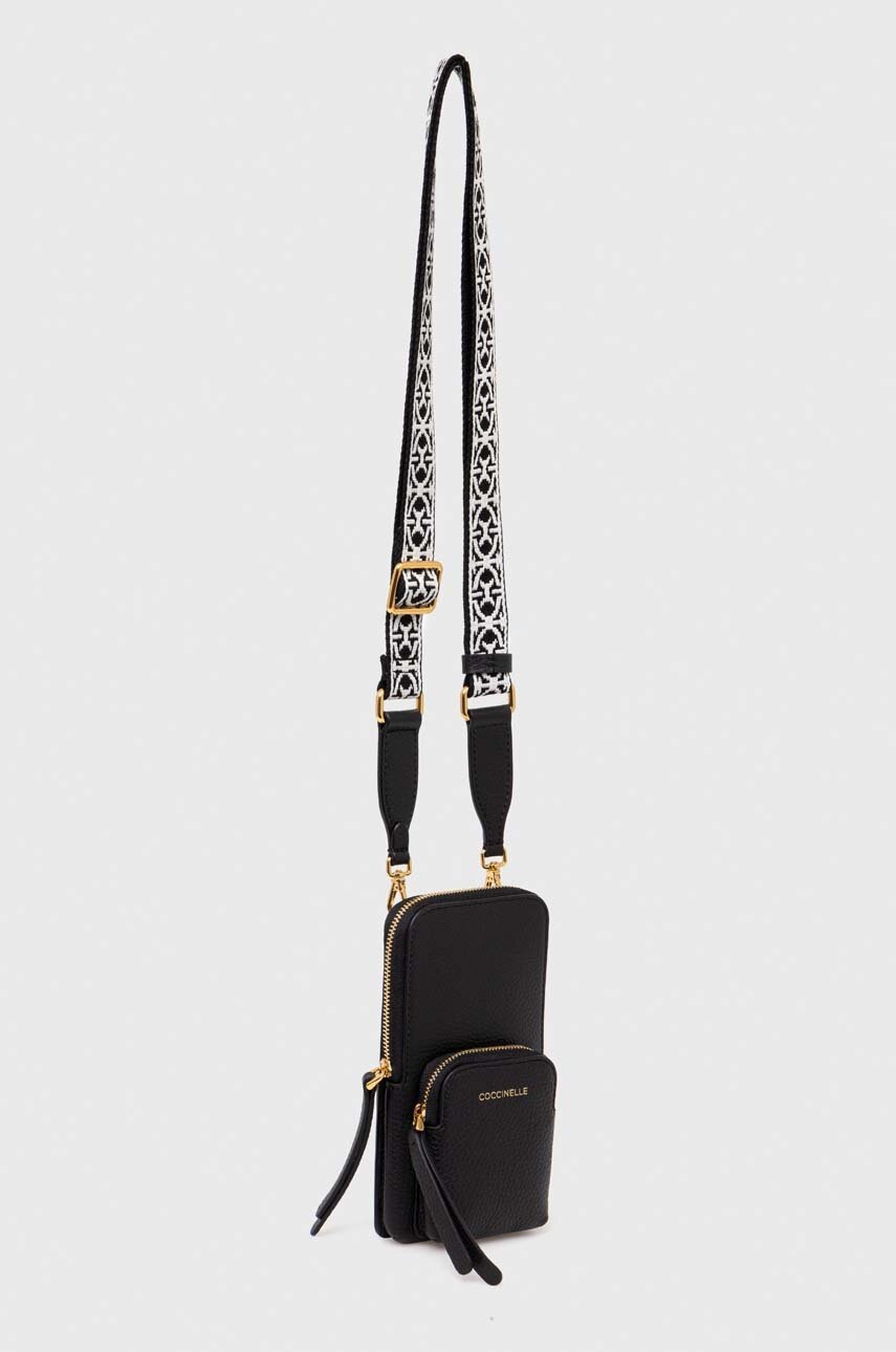 Coccinelle pokrowiec na telefon skórzany kolor czarny