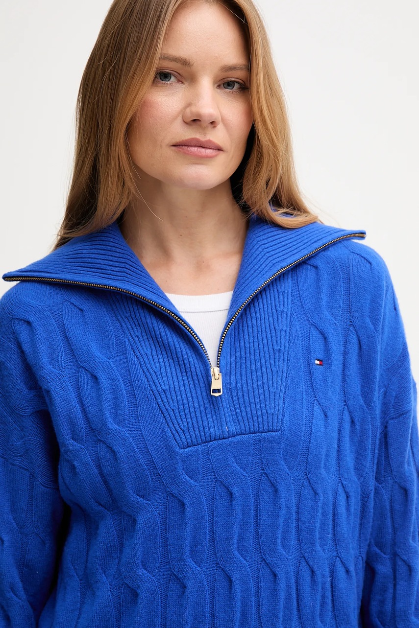 Tommy Hilfiger sweter wełniany damski kolor niebieski WW0WW46425