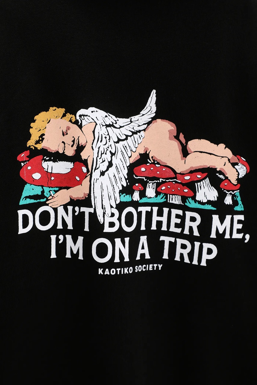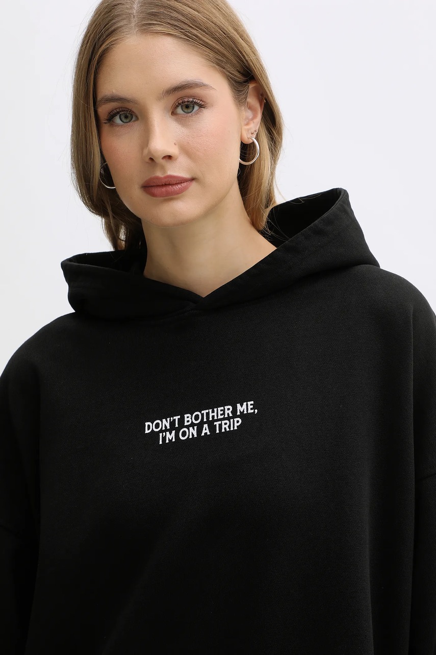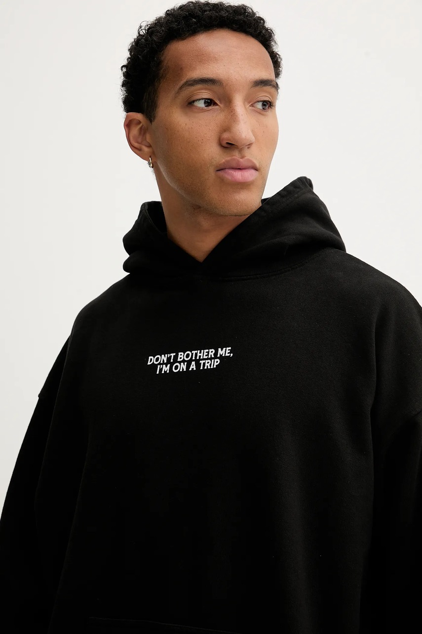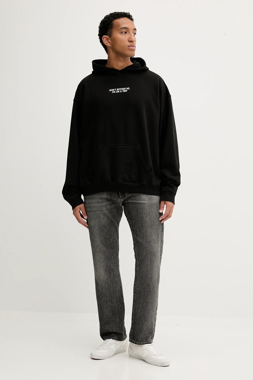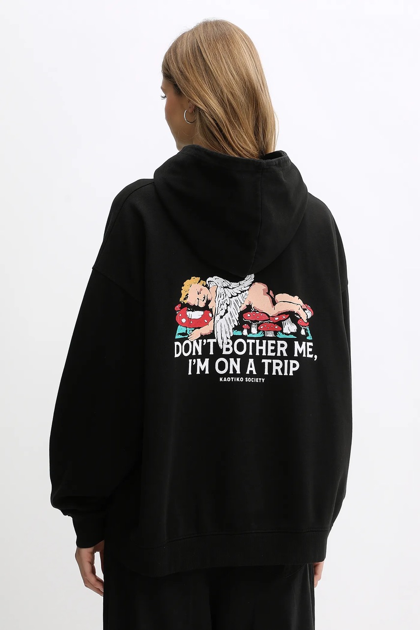 Kaotiko bluza bawełniana kolor czarny z kapturem z nadrukiem AR001-02-G002
