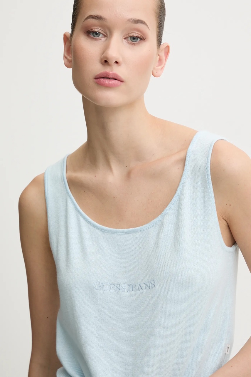Guess Jeans top z domieszką jedwabiu kolor niebieski W4BR17 Z3HO2