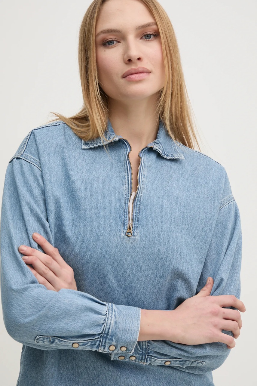 Pepe Jeans bluzka jeansowa NOVA damska kolor niebieski gładka PL304985