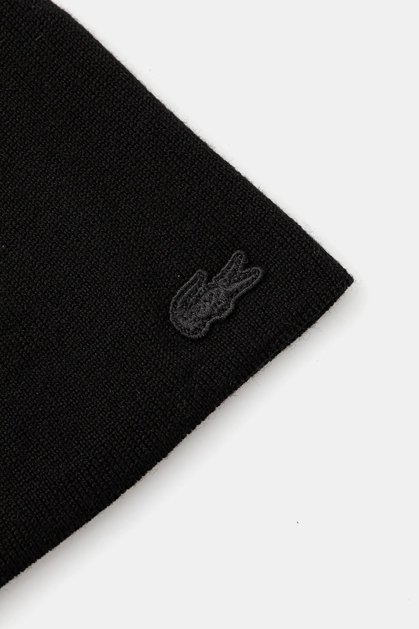 Lacoste czapka wełniana kolor czarny z cienkiej dzianiny wełniana RB3021