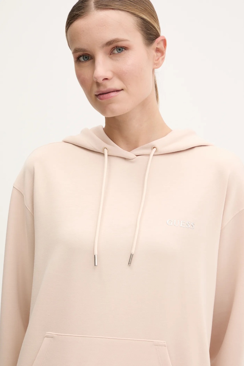 Guess bluza GELSEY damska kolor beżowy z kapturem gładka V5RQ18 KCOB2