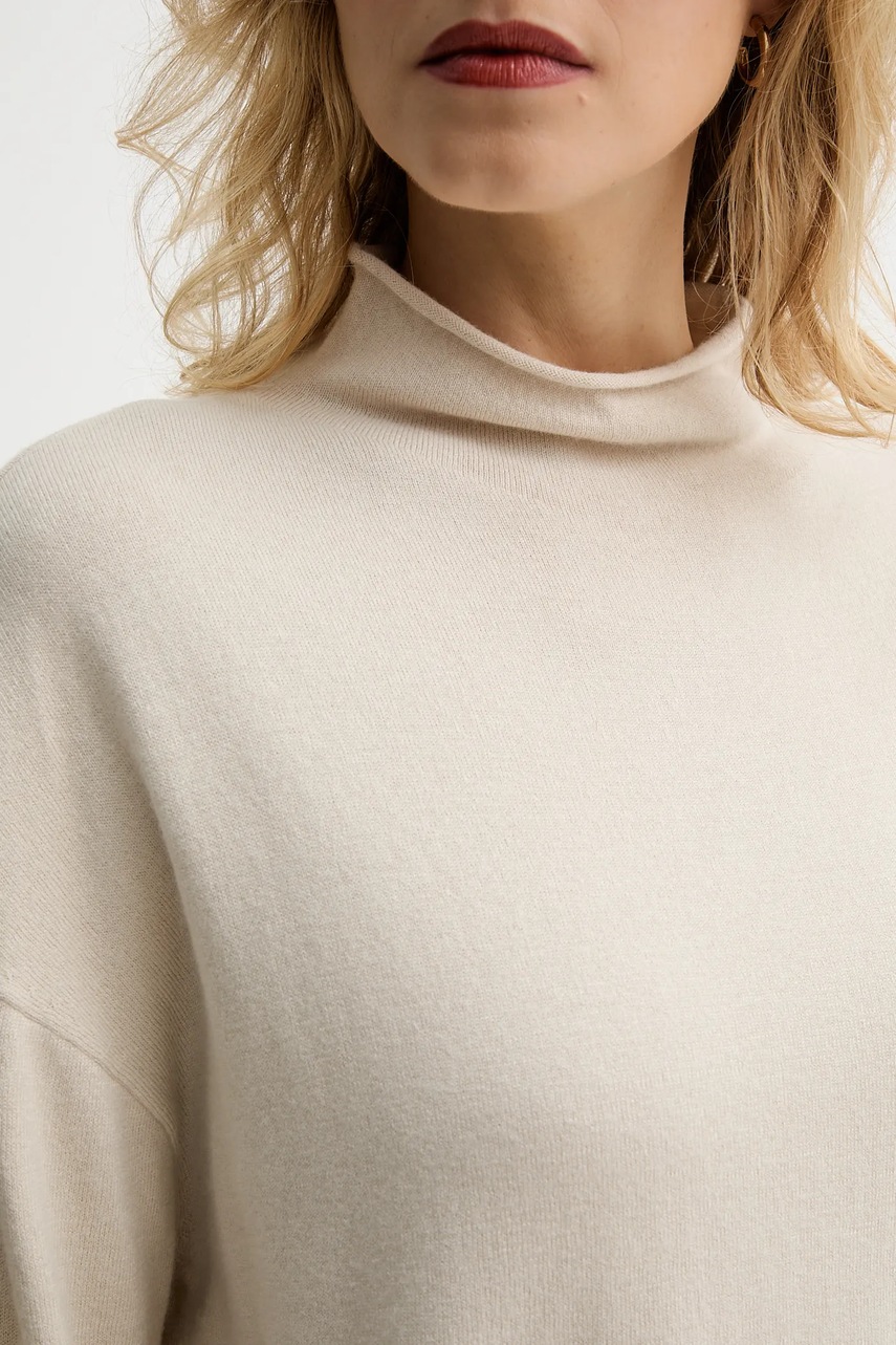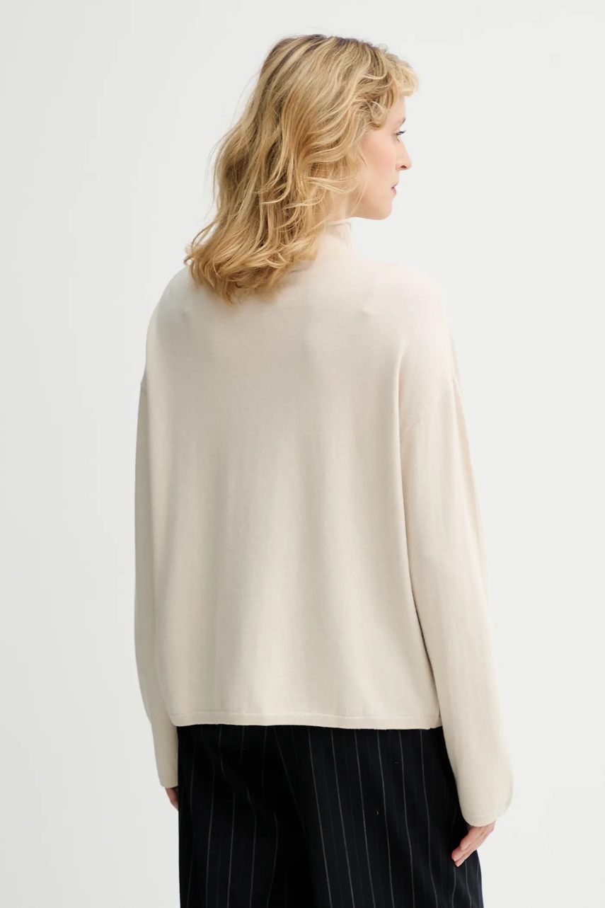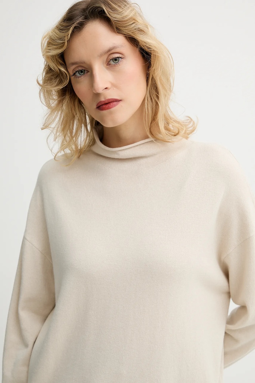 Marc O'Polo sweter z dodatkiem wełny damski kolor beżowy lekki z półgolfem 509511860481