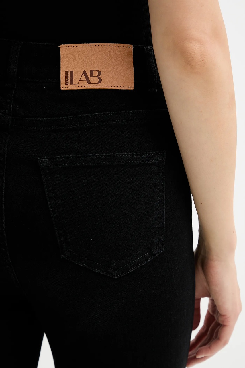 - Model z podwyższoną talią i zapięciem na guzik i suwak.