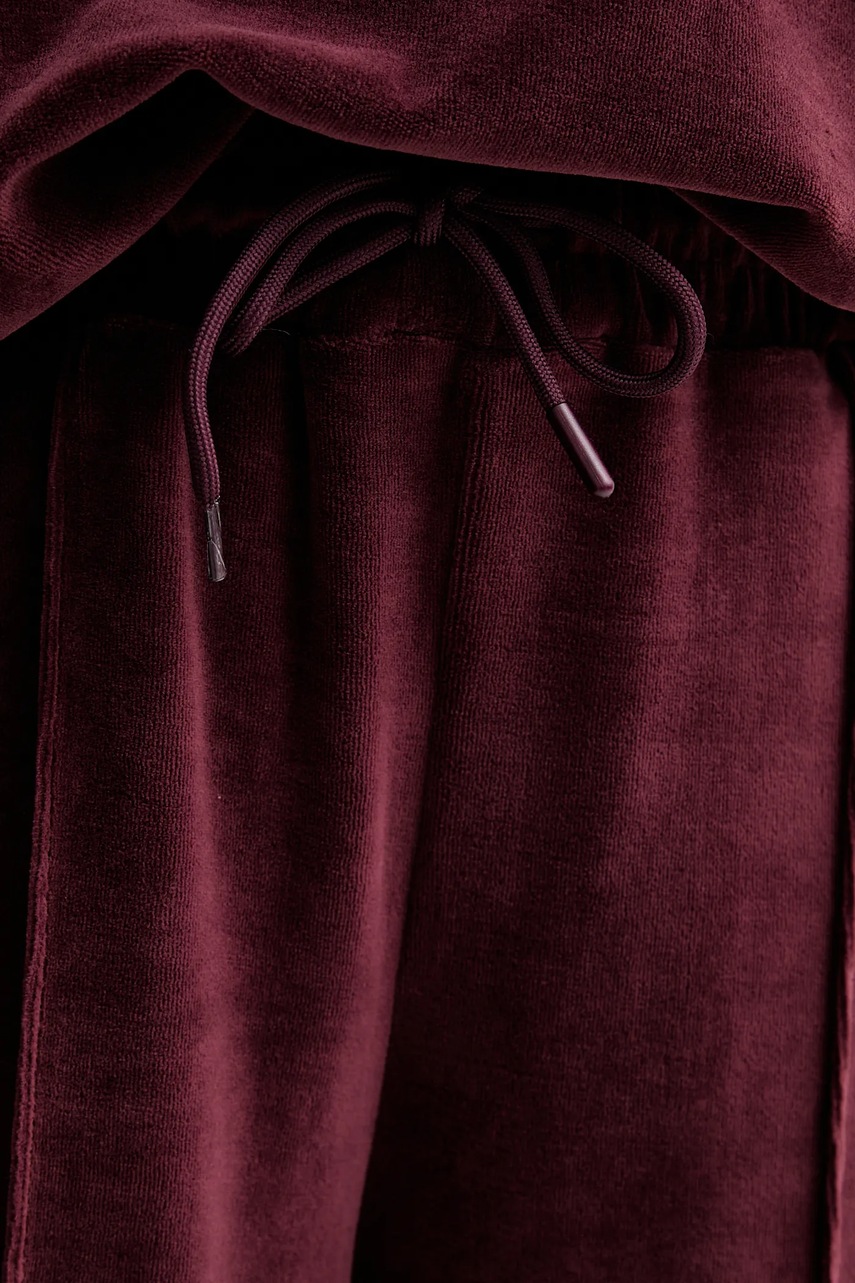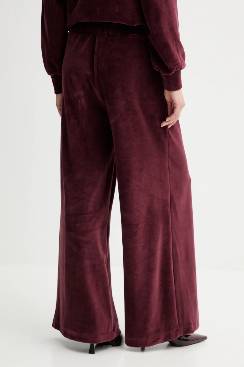 Answear.LAB spodnie dresowe welurowe damskie kolor bordowy gładkie