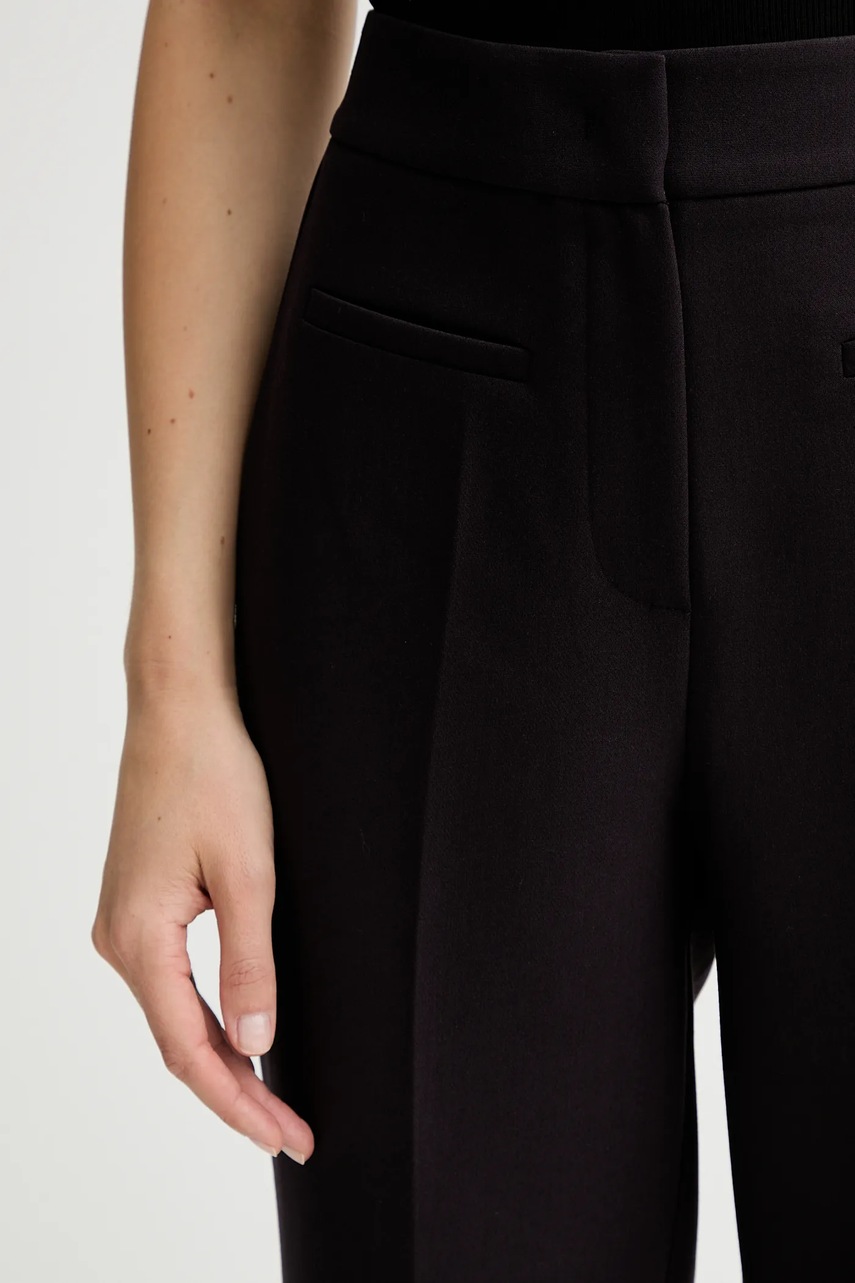 - Model z podwyższoną talią i zapięciem na suwak, guzik i haftki.