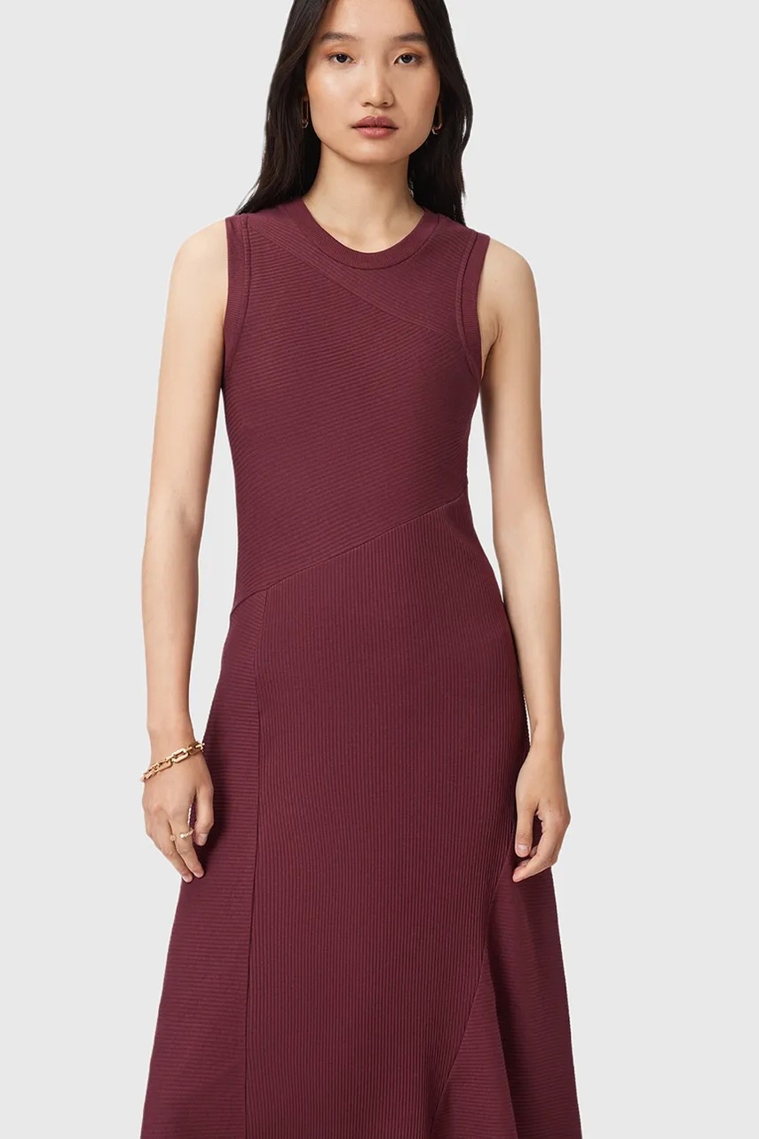 AllSaints sukienka GIA kolor bordowy maxi rozkloszowana W073DD