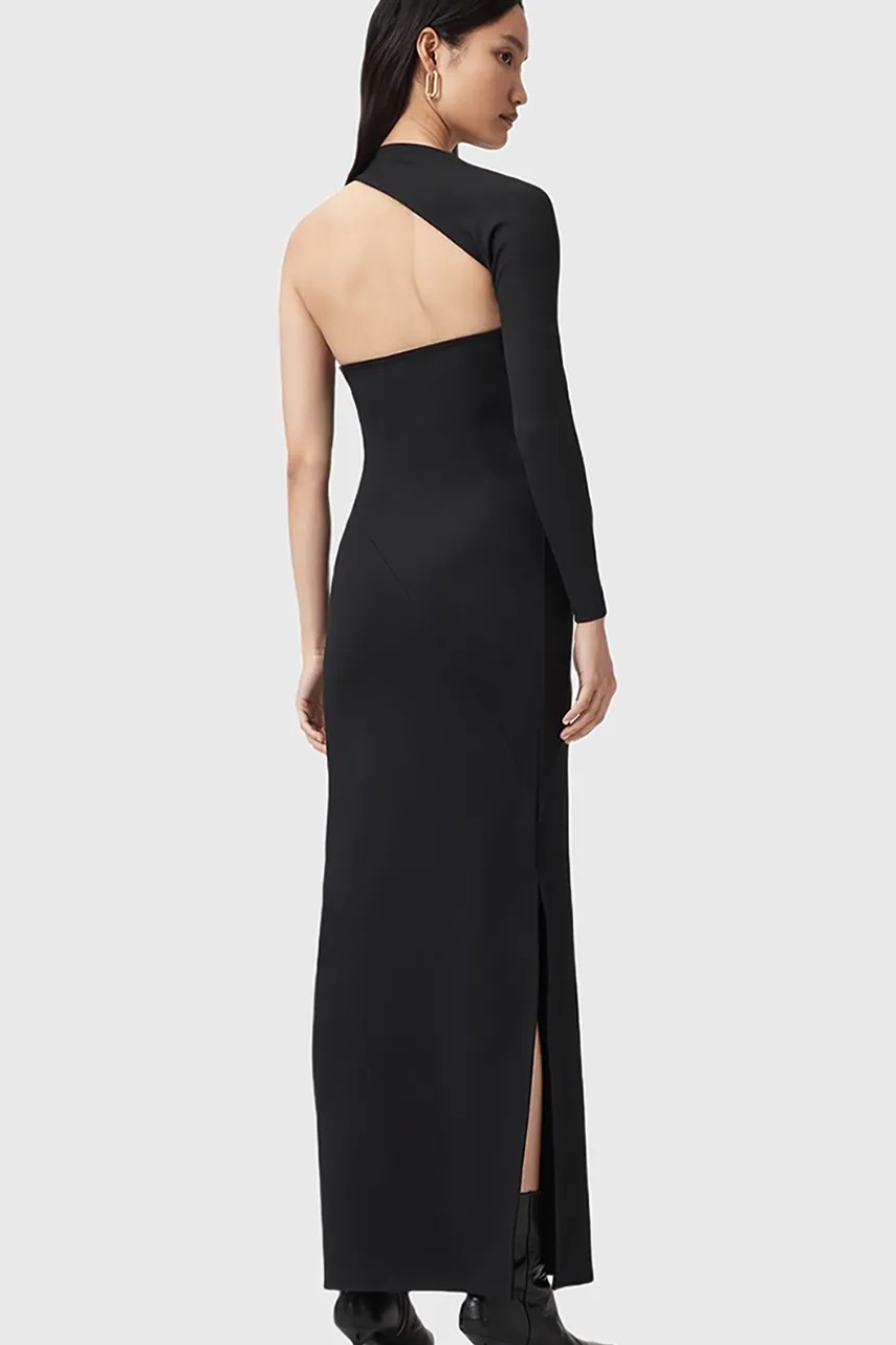 AllSaints sukienka ARI kolor czarny maxi dopasowana W074DD