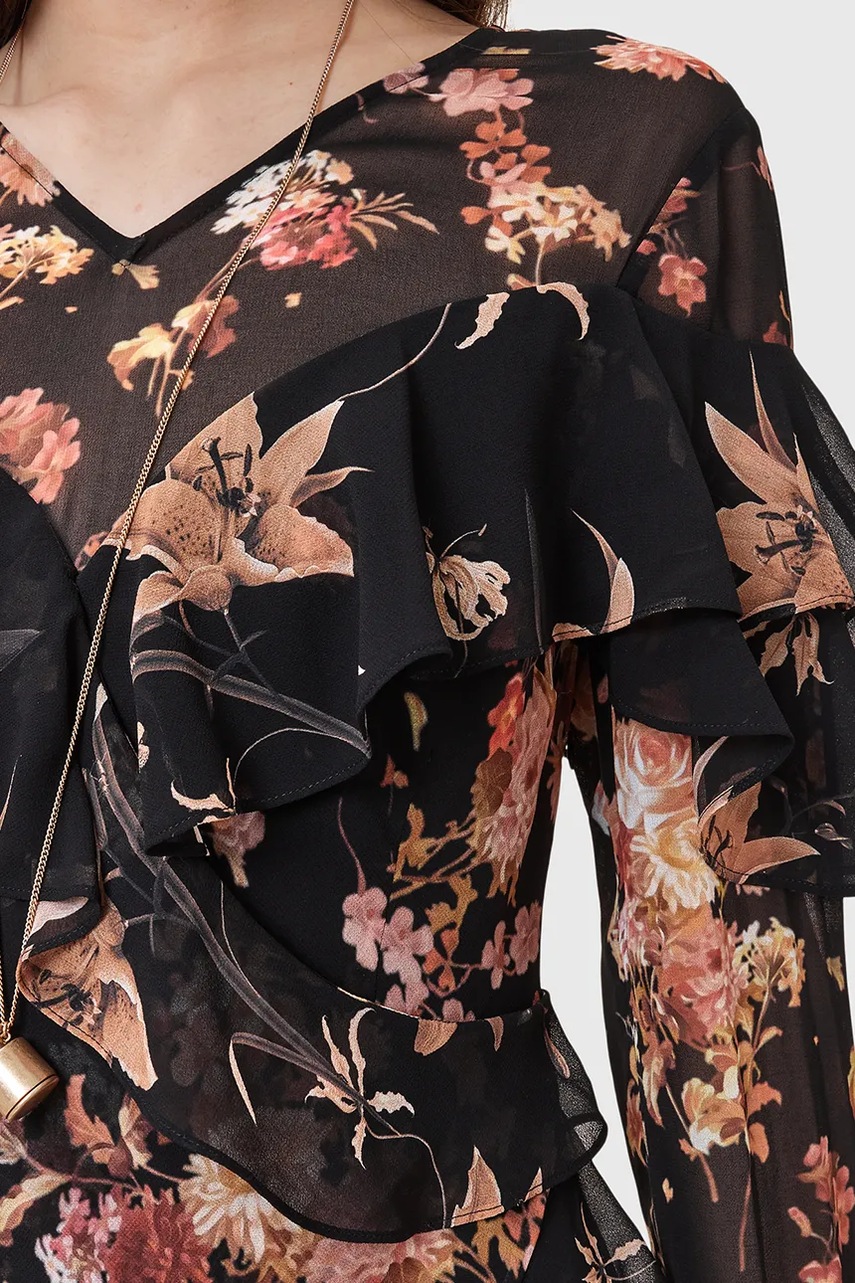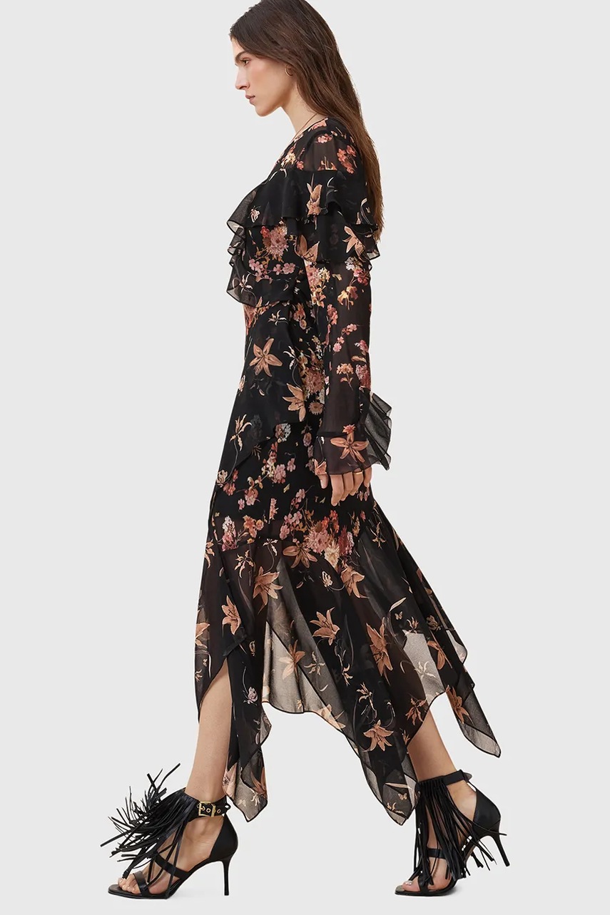 AllSaints sukienka FRESCA kolor czarny maxi rozkloszowana W021DD