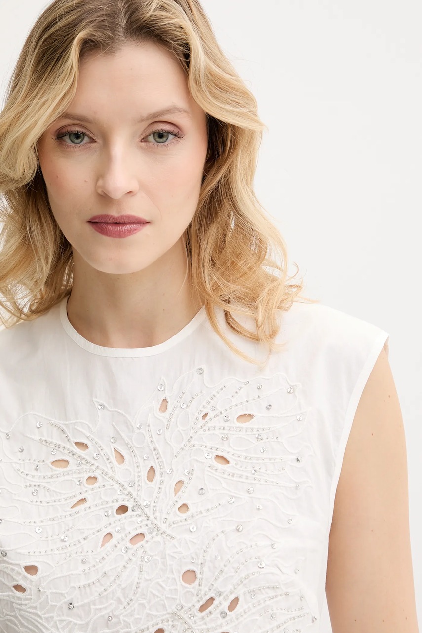 Pinko bluzka bawełniana damska kolor biały z aplikacją 104850 A2H0