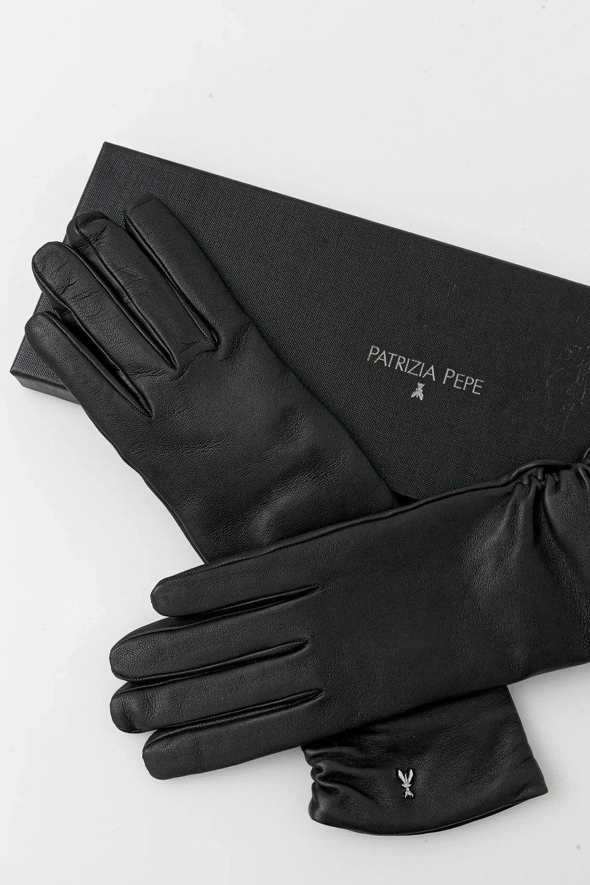 Patrizia Pepe rękawiczki skórzane damskie kolor czarny 2F0105 L034