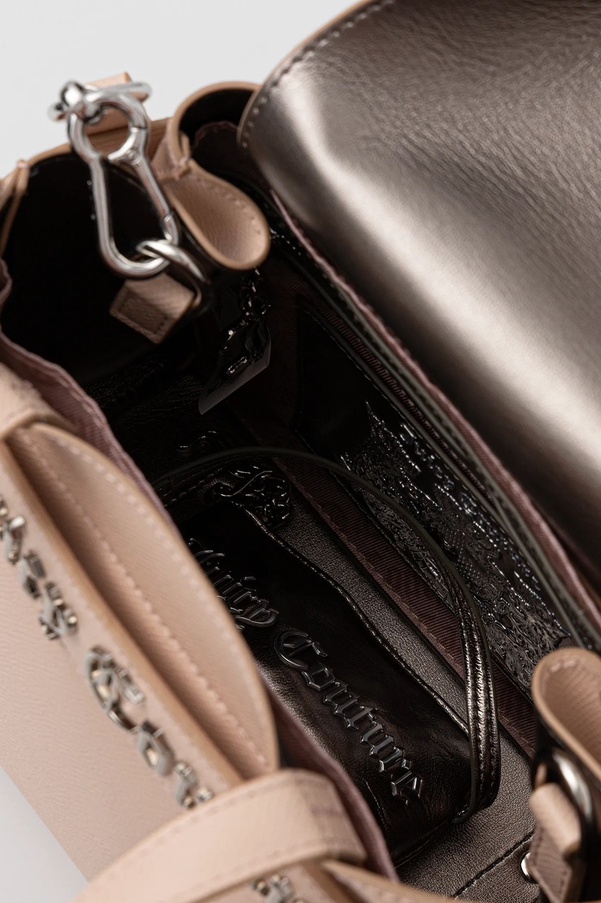 - Model wyposażony w metalowe nóżki, które zabezpieczają spód torebki.