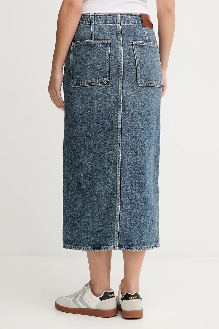 Calvin Klein Jeans spódnica jeansowa kolor niebieski midi ołówkowa LV047D724G