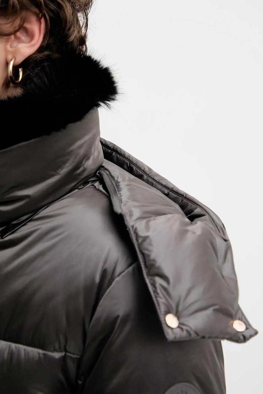 - Podwyższony kołnierz i odpinany kaptur gwarantują dodatkową ochronę przed chłodem.