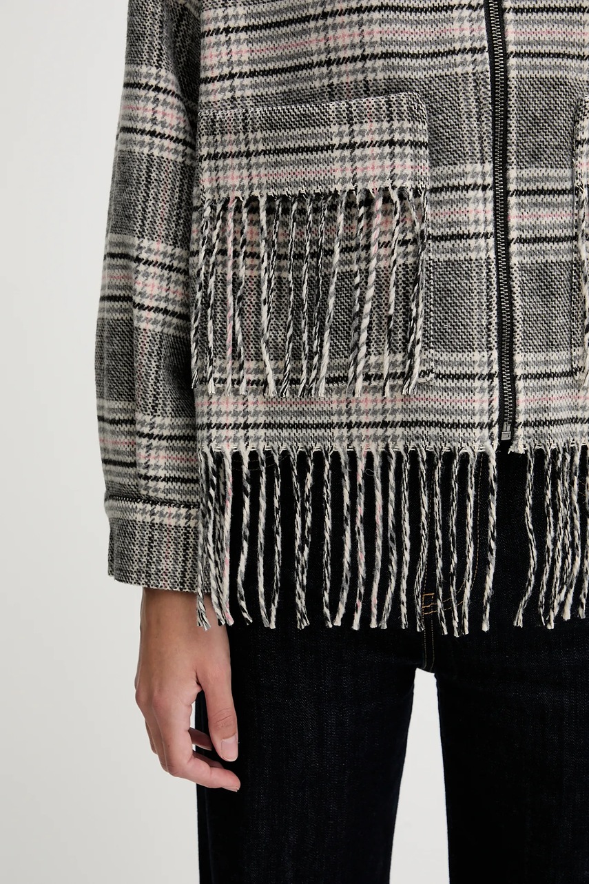 - Model z ozdobnymi frędzlami.