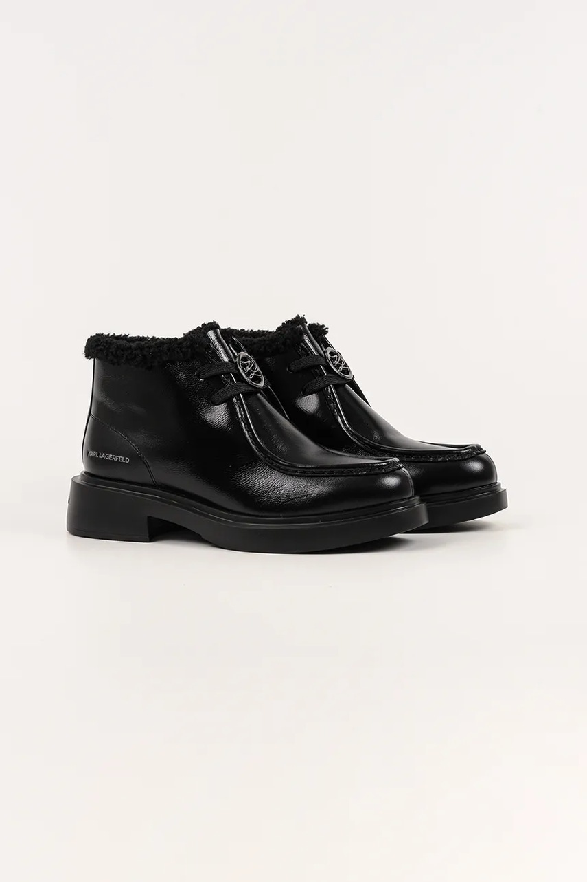 Karl Lagerfeld botki skórzane MACIE damskie kolor czarny na płaskim obcasie lekko ocieplone KL41235
