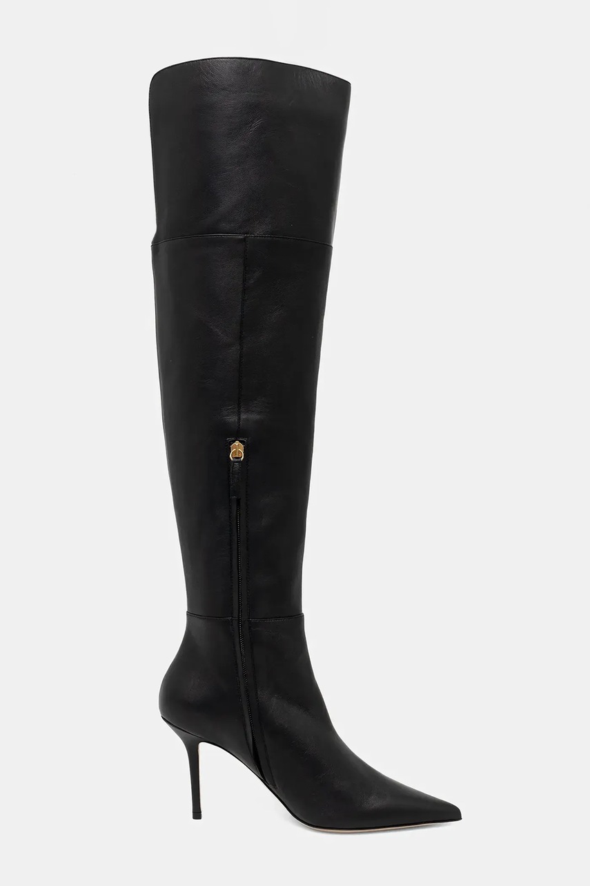 Elisabetta Franchi kozaki skórzane damskie kolor czarny na szpilce SA04L56E2
