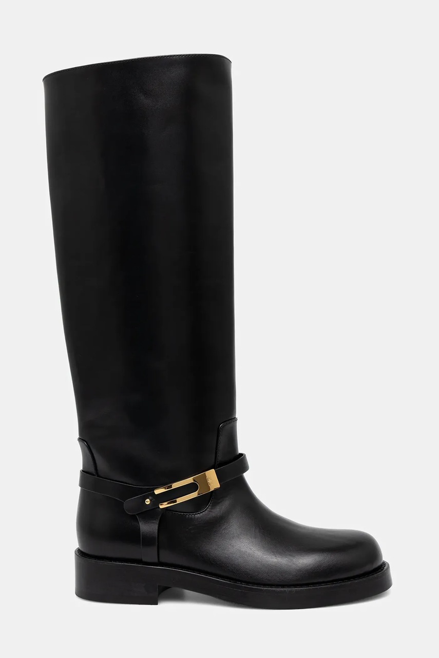 Elisabetta Franchi kozaki skórzane damskie kolor czarny na płaskim obcasie SA57B56E2