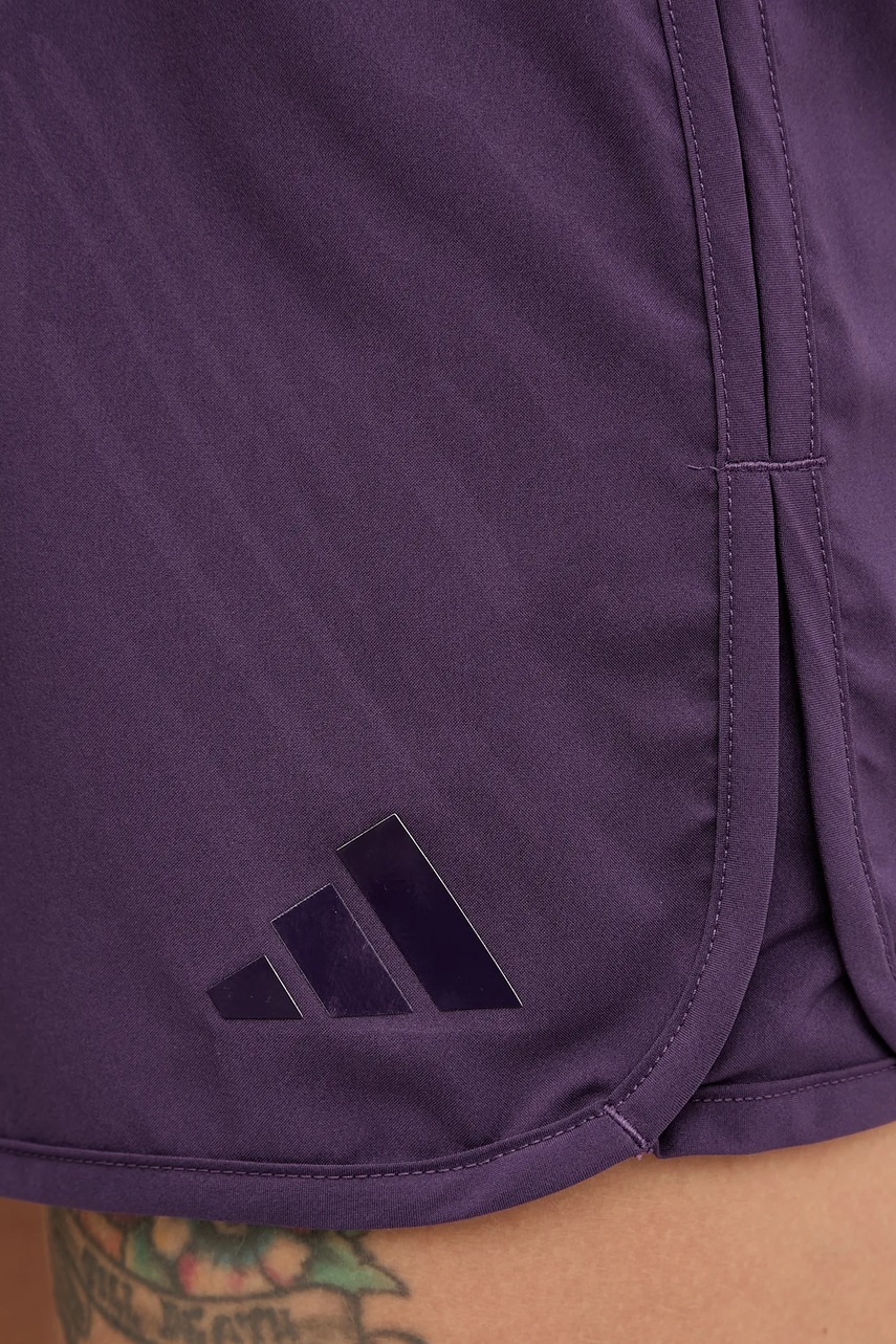 adidas Performance szorty treningowe Pacer damskie kolor fioletowy gładkie high waist JX7300