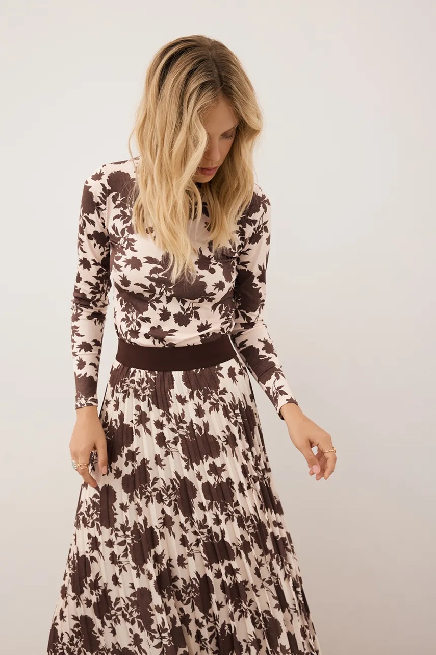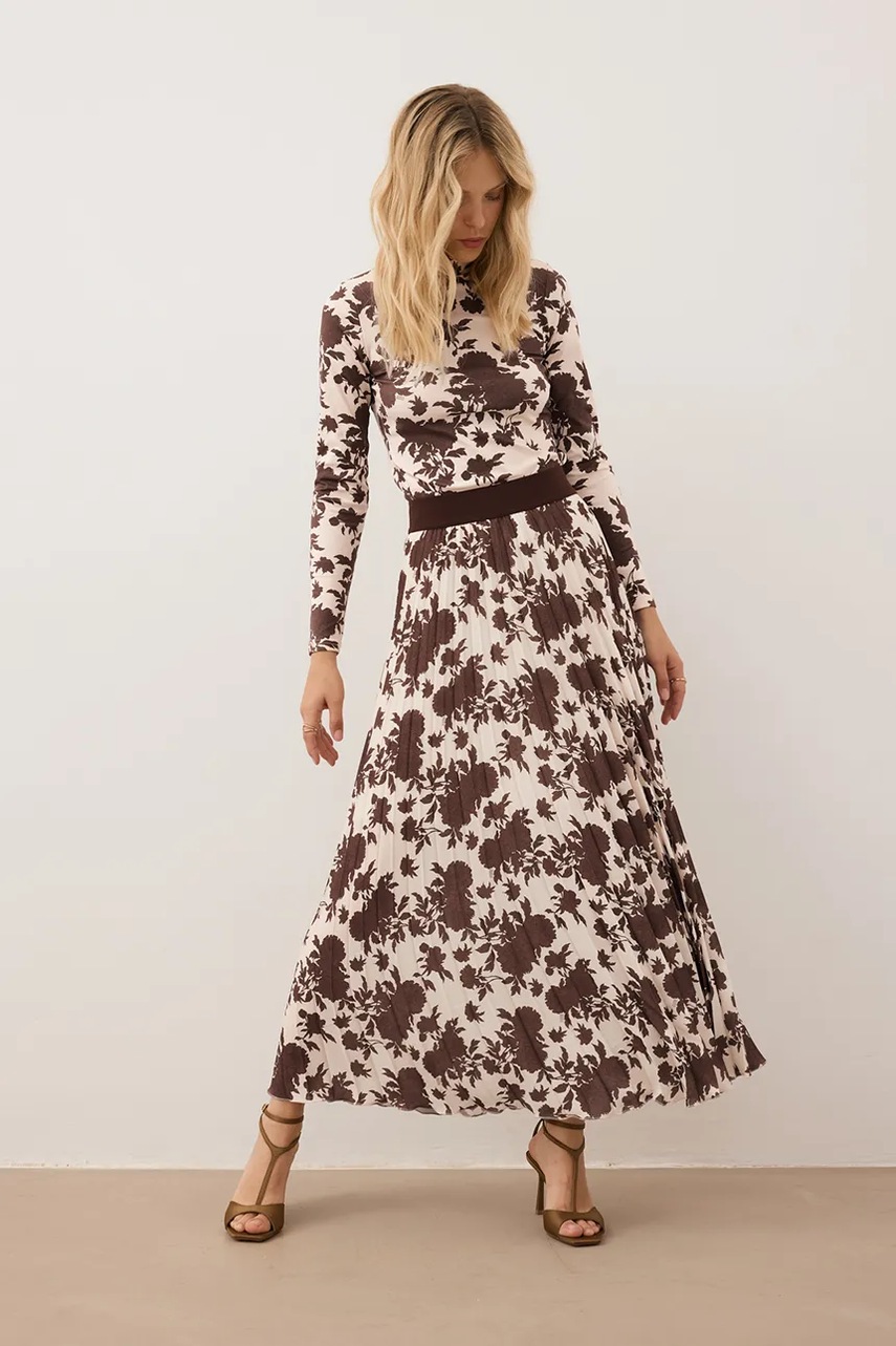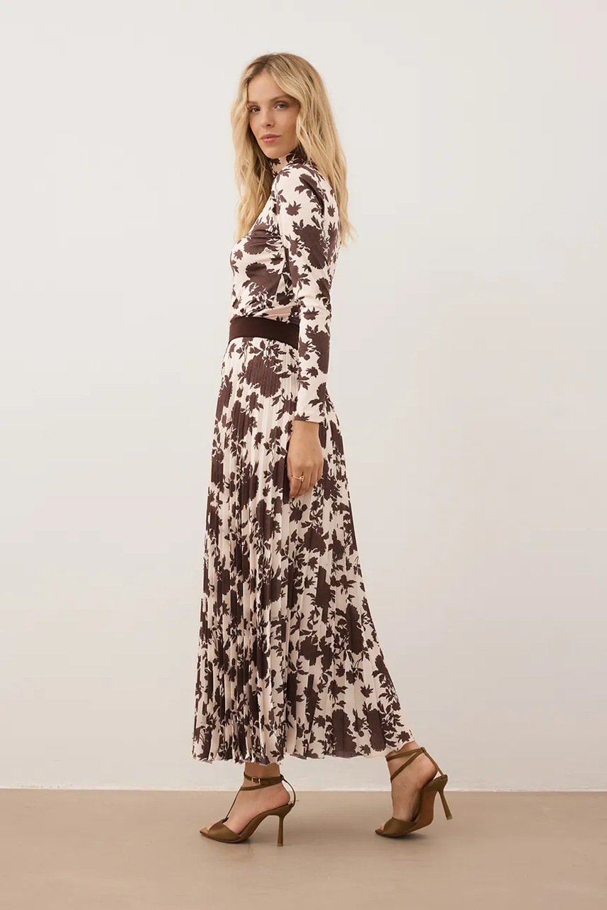 Bizuu spódnica MINA kolor brązowy maxi rozkloszowana MINA KREMOWY