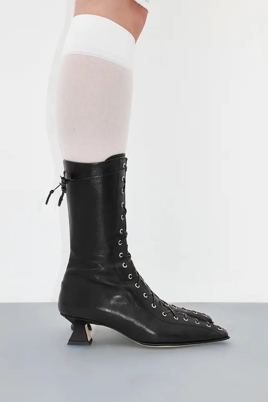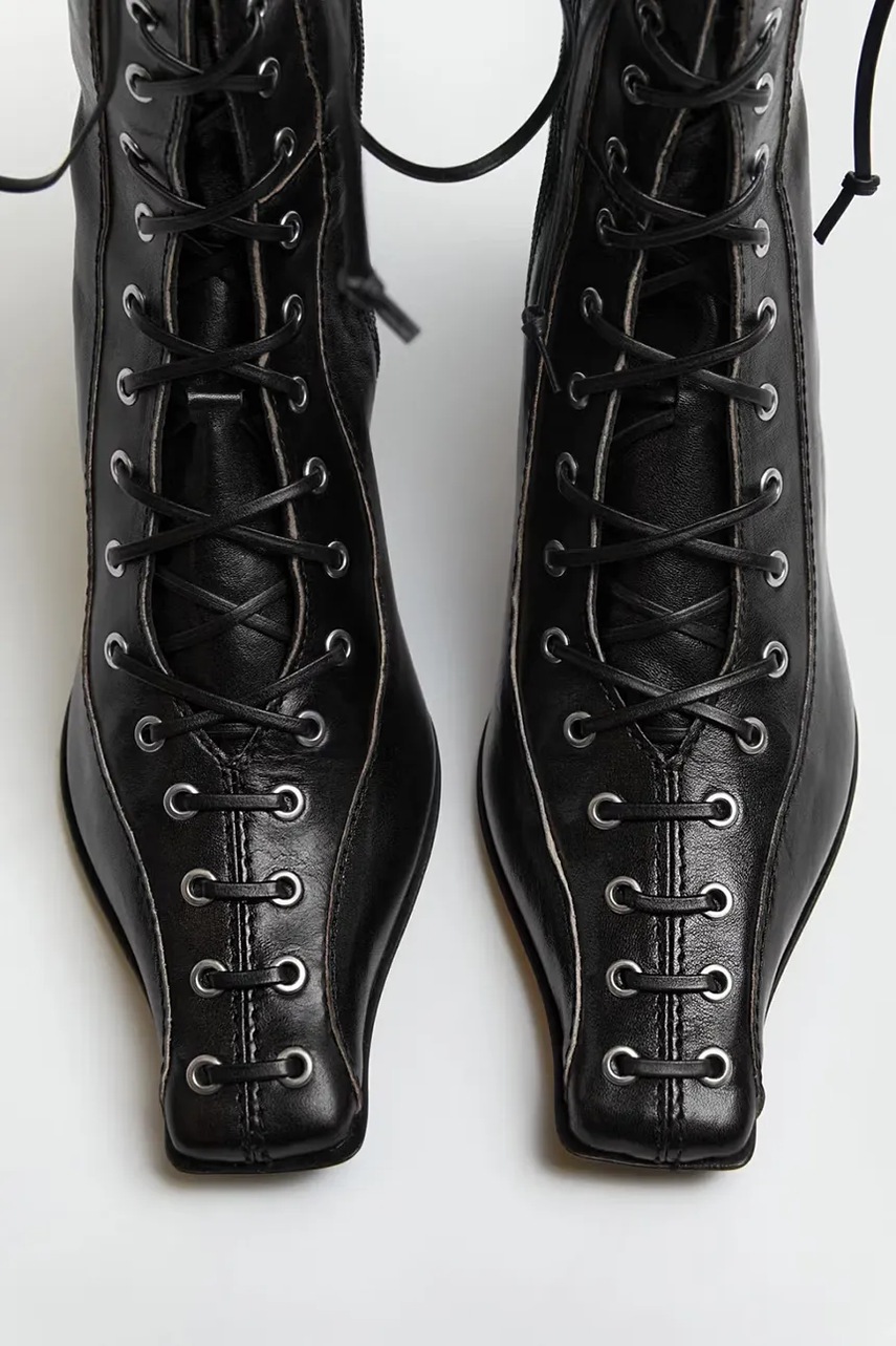 - Sznurowany model z bocznym zapięciem na suwak.