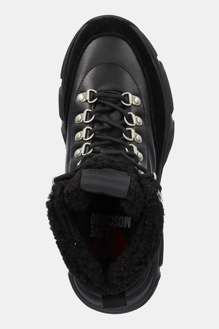 Love Moschino botki kolor czarny na płaskim obcasie JA15356G0NIAM00A