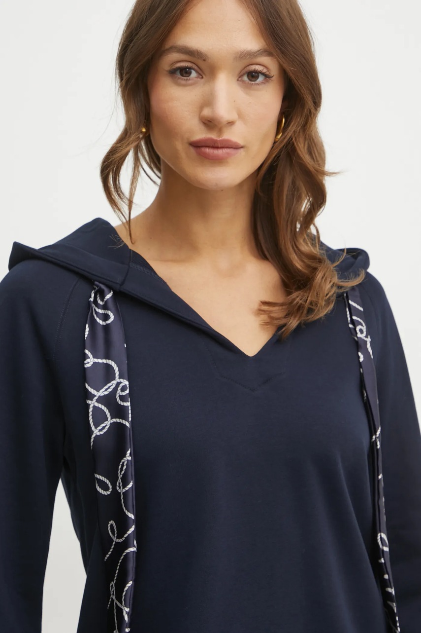 Luisa Spagnoli bluza damska kolor granatowy z kapturem gładka 541846