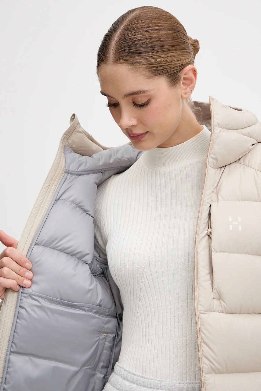 Haglöfs kurtka puchowa Rosson Down damska kolor beżowy zimowa 607468