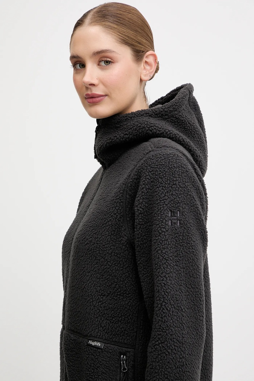 Haglöfs bluza polarowa Funäs damska kolor czarny z kapturem gładka 607818