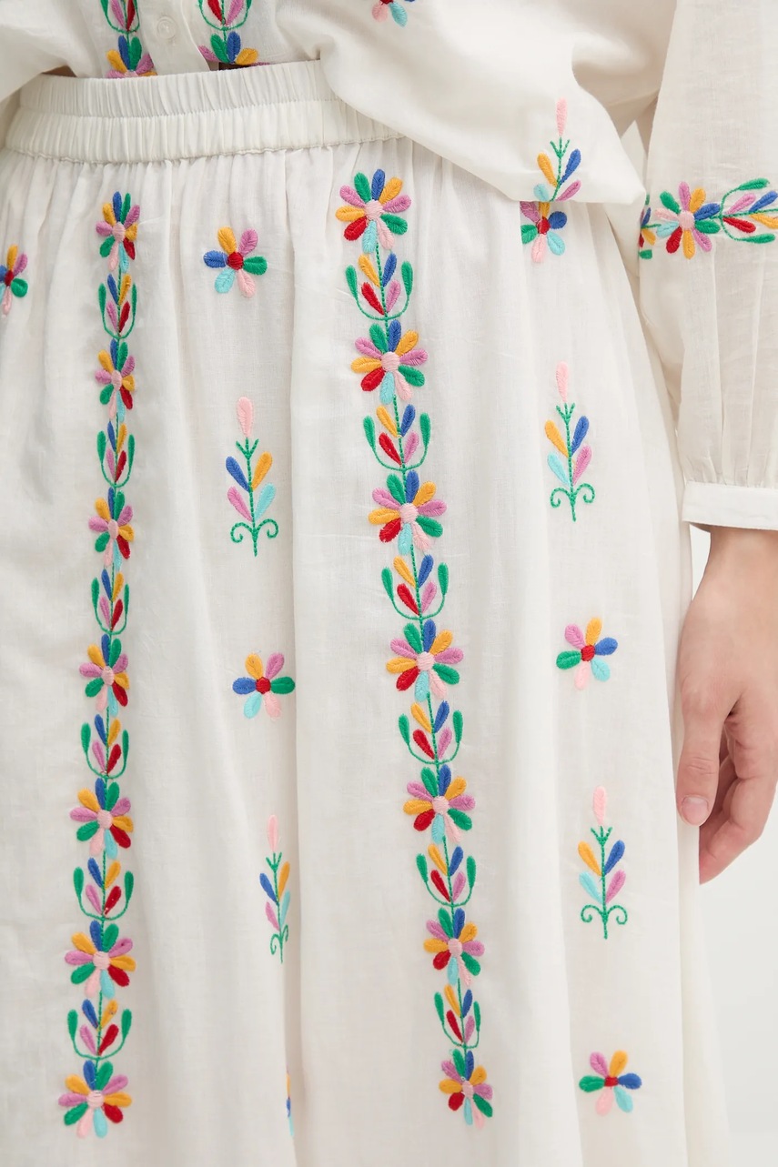La Petite Française spódnica bawełniana JAMAL kolor beżowy maxi rozkloszowana JAMAL