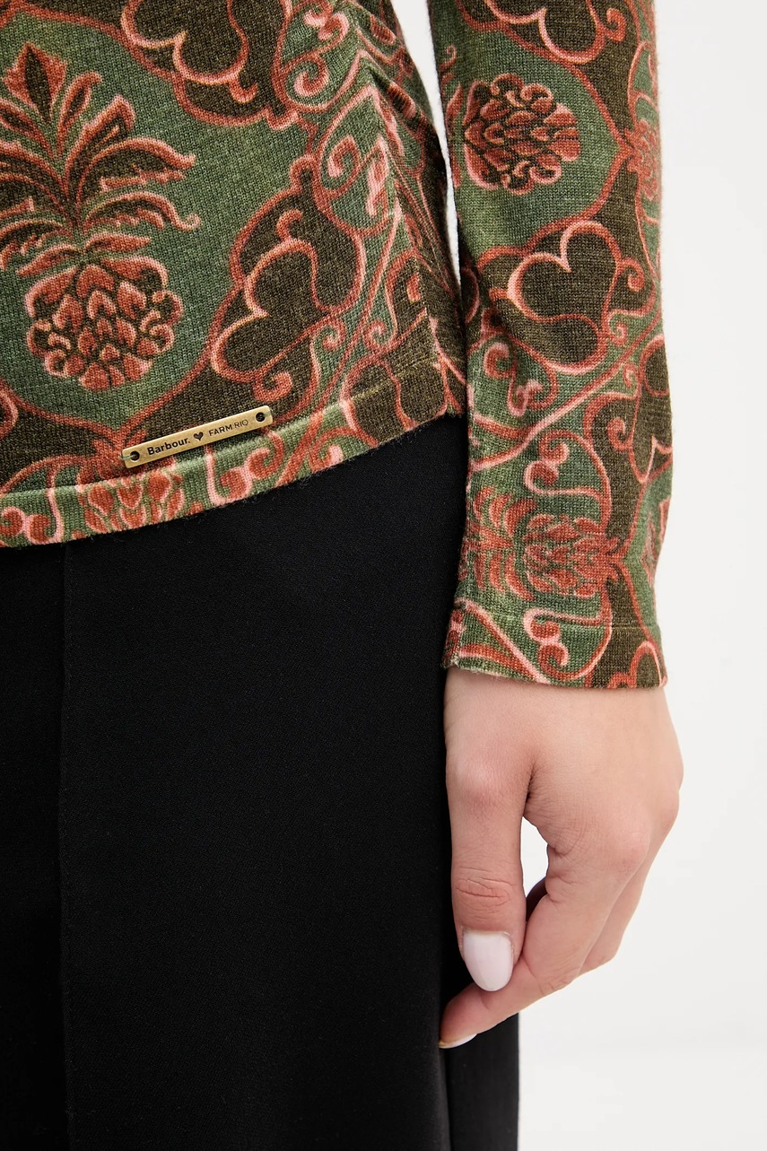 Barbour sweter wełniany x Farm Rio damski kolor zielony lekki LKN1718