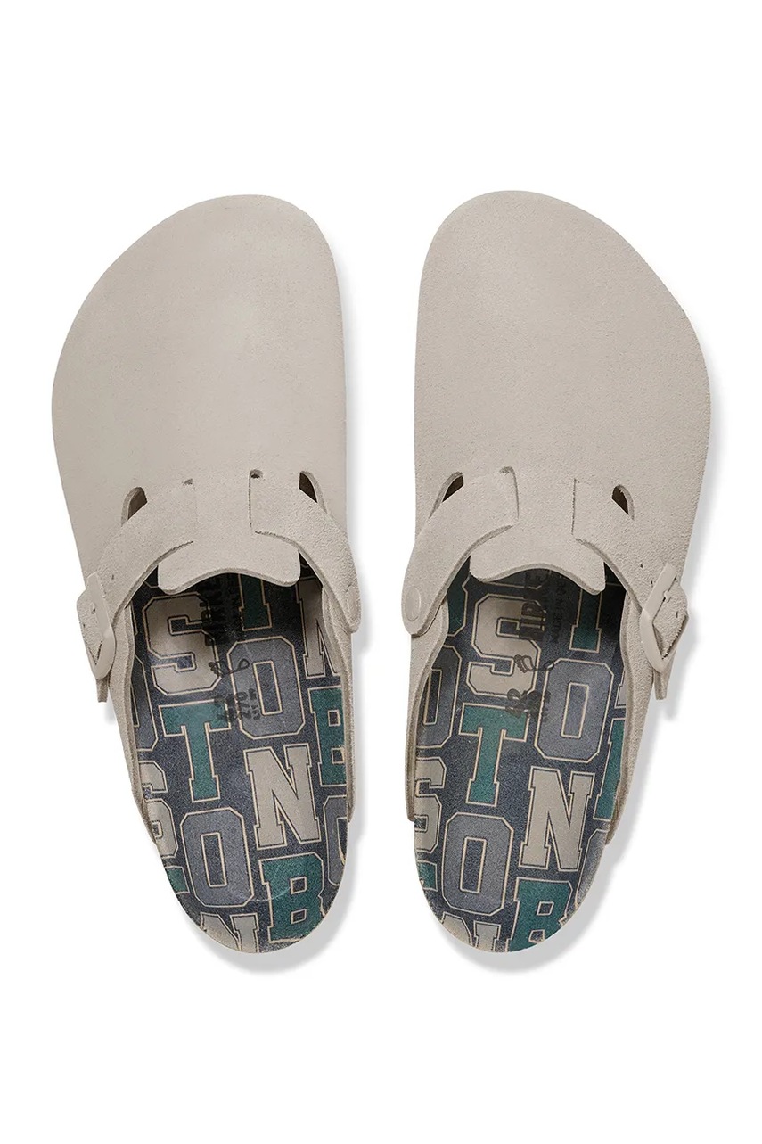 Birkenstock klapki zamszowe Boston Varsity damskie kolor szary 1030615