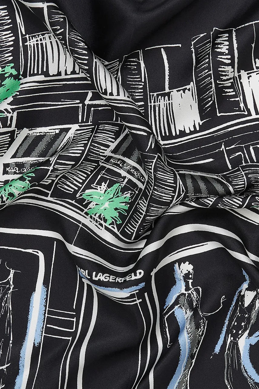 Karl Lagerfeld chusta jedwabna K/SKETCH damska kolor czarny wzorzysta A4W33115