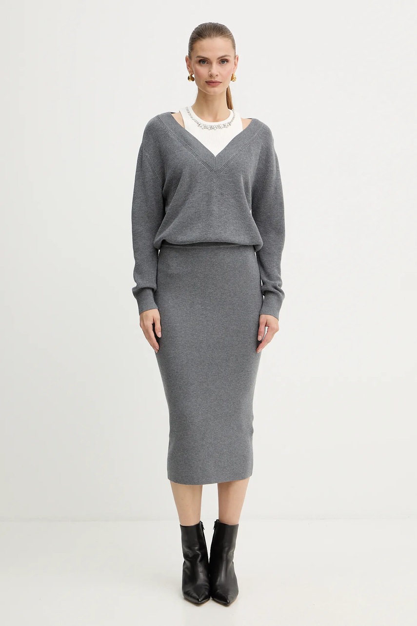 Liu Jo sukienka z dodatkiem wełny kolor szary maxi prosta MF5161 MA85Q