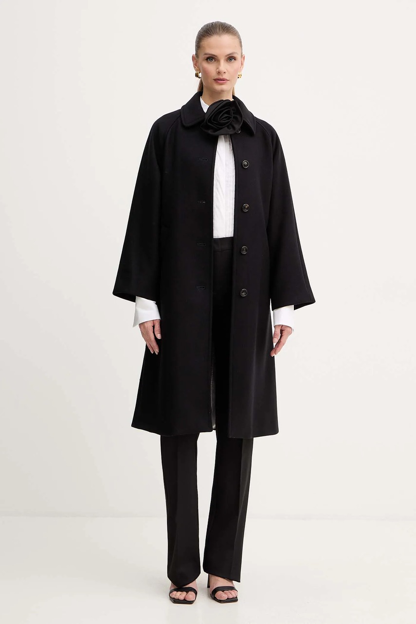 Marella spodnie damskie kolor czarny dzwony high waist 2523136242200