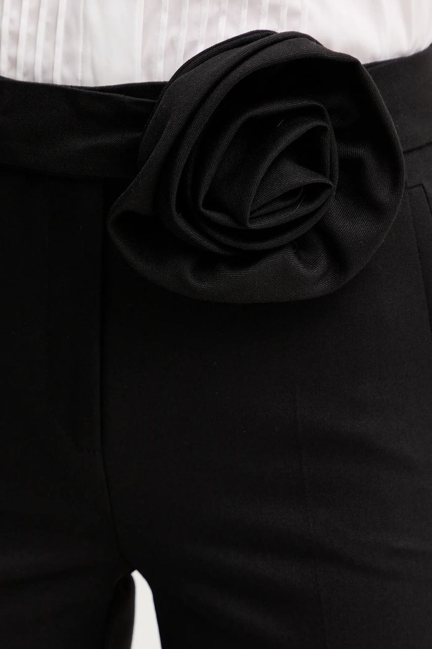 - Model z podwyższoną talią i zapięciem na suwak, guzik i haftkę.