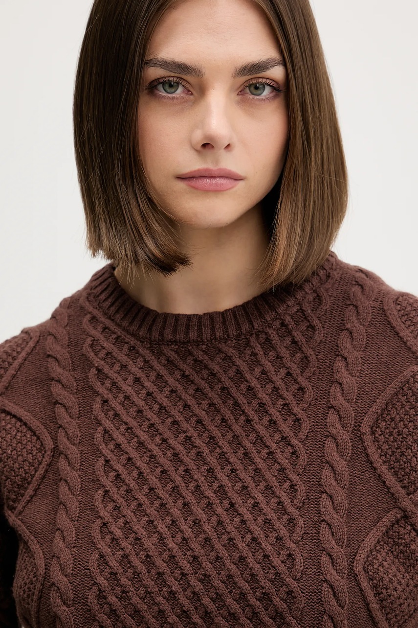 Guess Jeans sweter z dodatkiem wełny damski kolor brązowy lekki W5BR09 Z0561