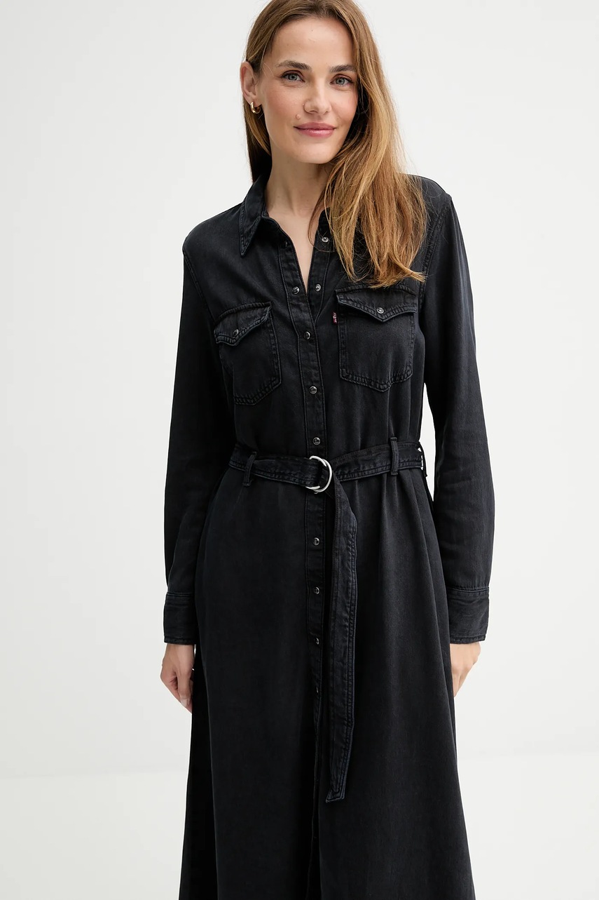 Levi's sukienka jeansowa kolor czarny midi rozkloszowana 004H3