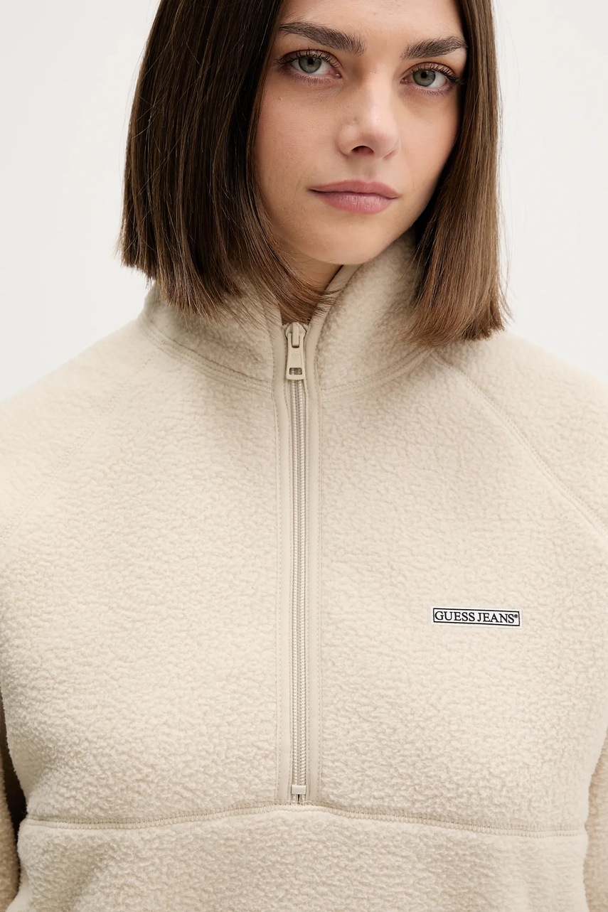 Guess Jeans bluza polarowa damska kolor beżowy gładka W5BQ18 K1042
