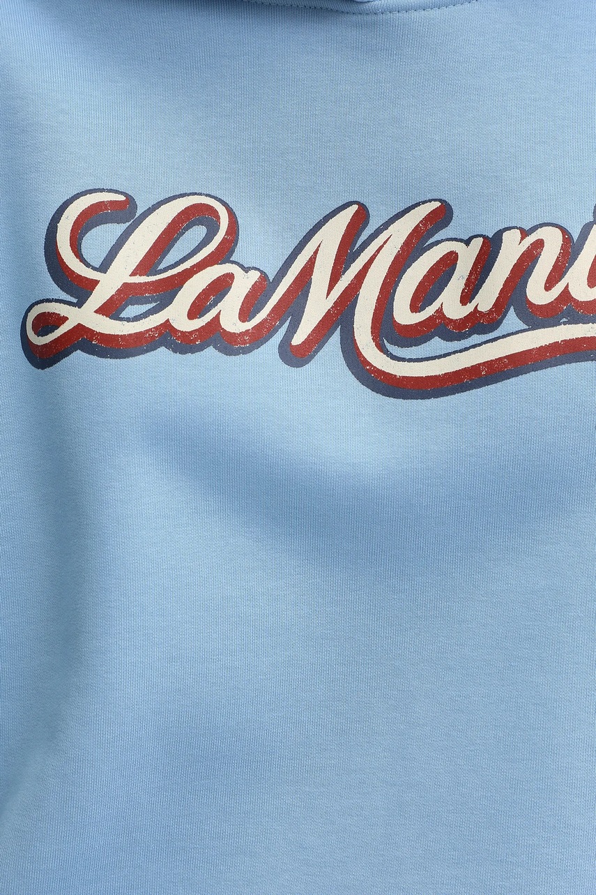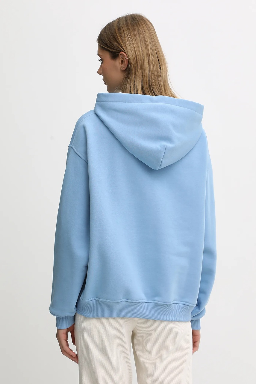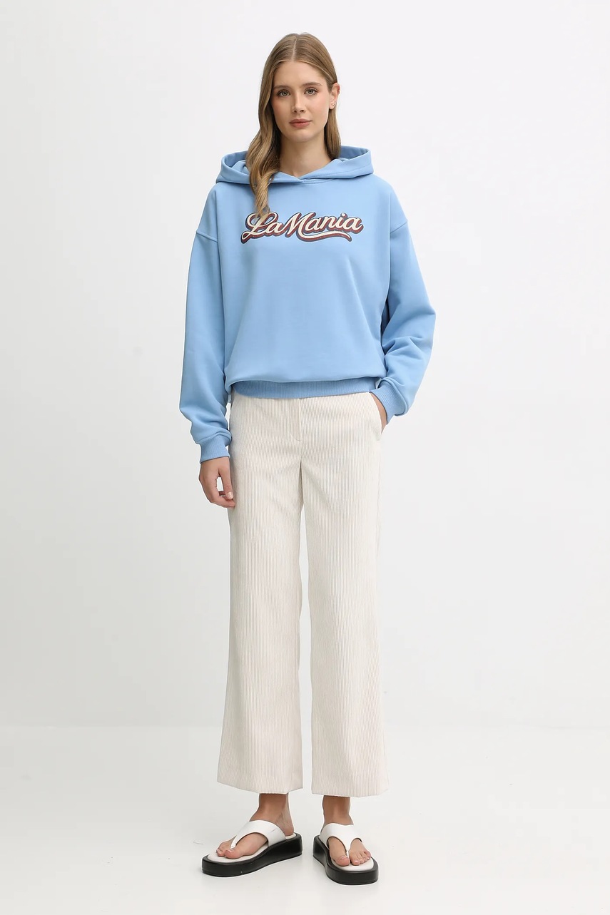 La Mania bluza TAE damska kolor niebieski z kapturem z nadrukiem TAE