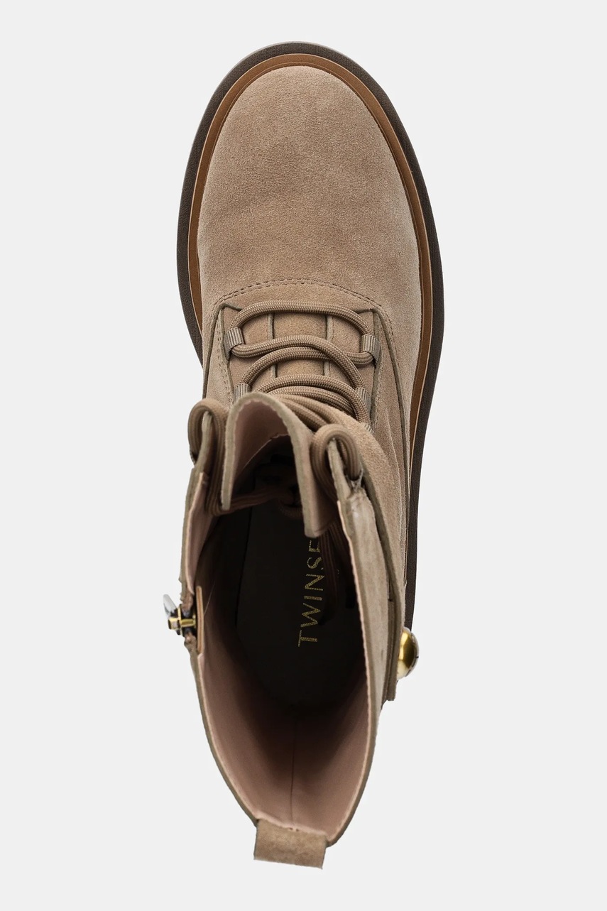 Twinset botki zamszowe damskie kolor beżowy na płaskim obcasie 252TGT050