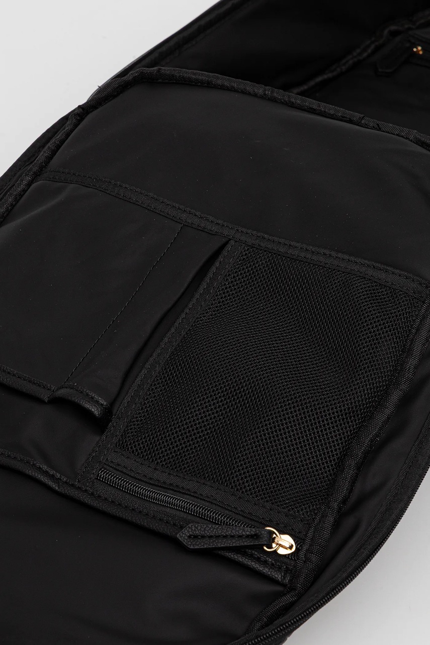 - Pasek na tylnym panelu umożliwia zaczepienie torby o rączkę walizki.