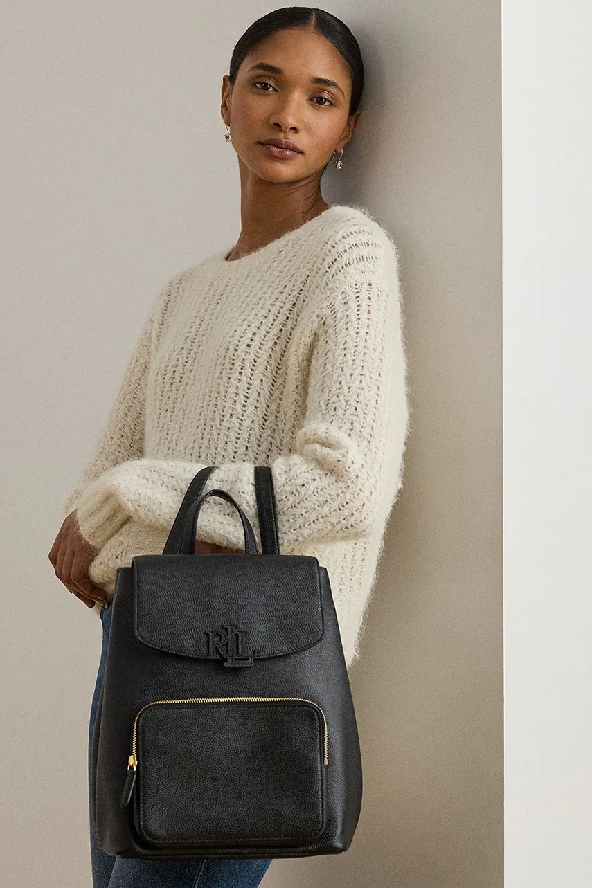 Lauren Ralph Lauren plecak skórzany damski kolor czarny duży gładki 431969355