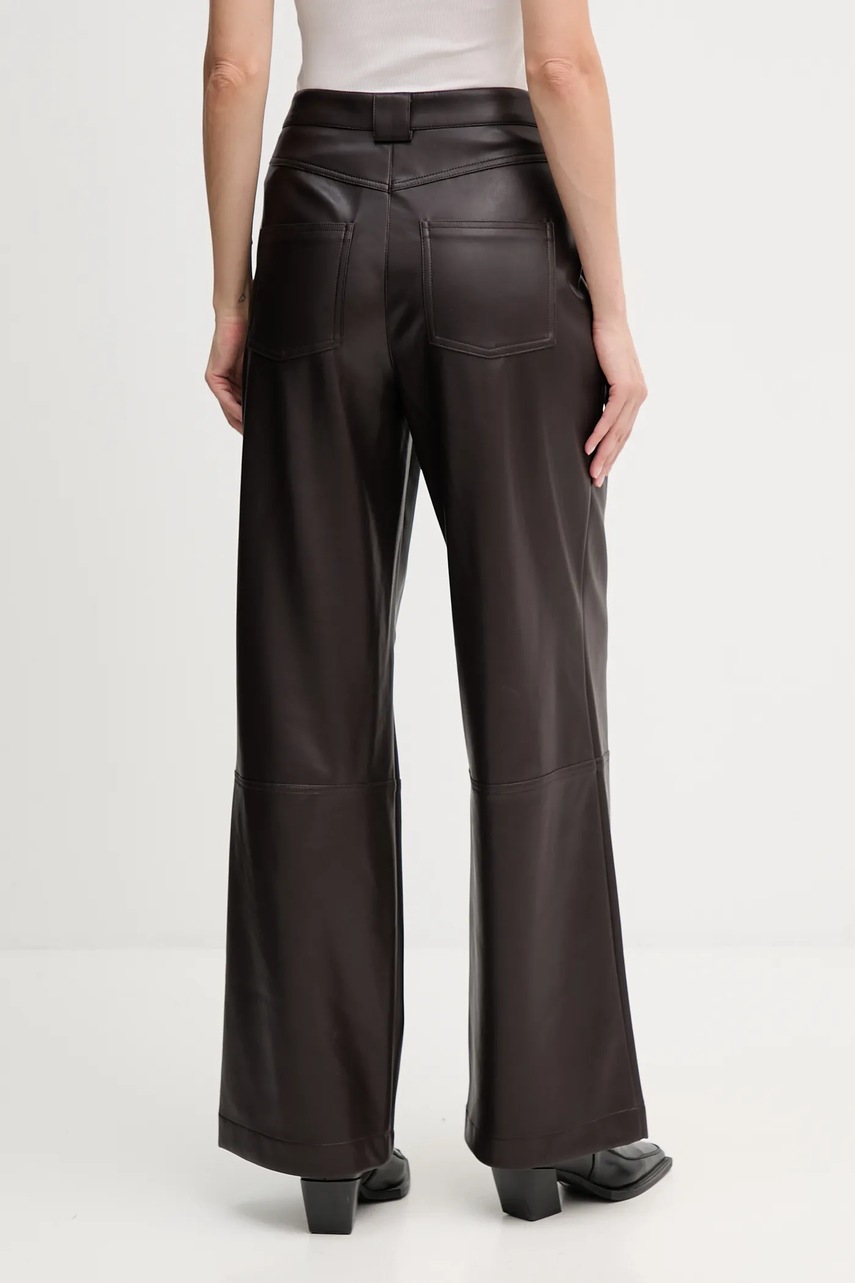 OUI spodnie damskie kolor brązowy szerokie high waist 85735
