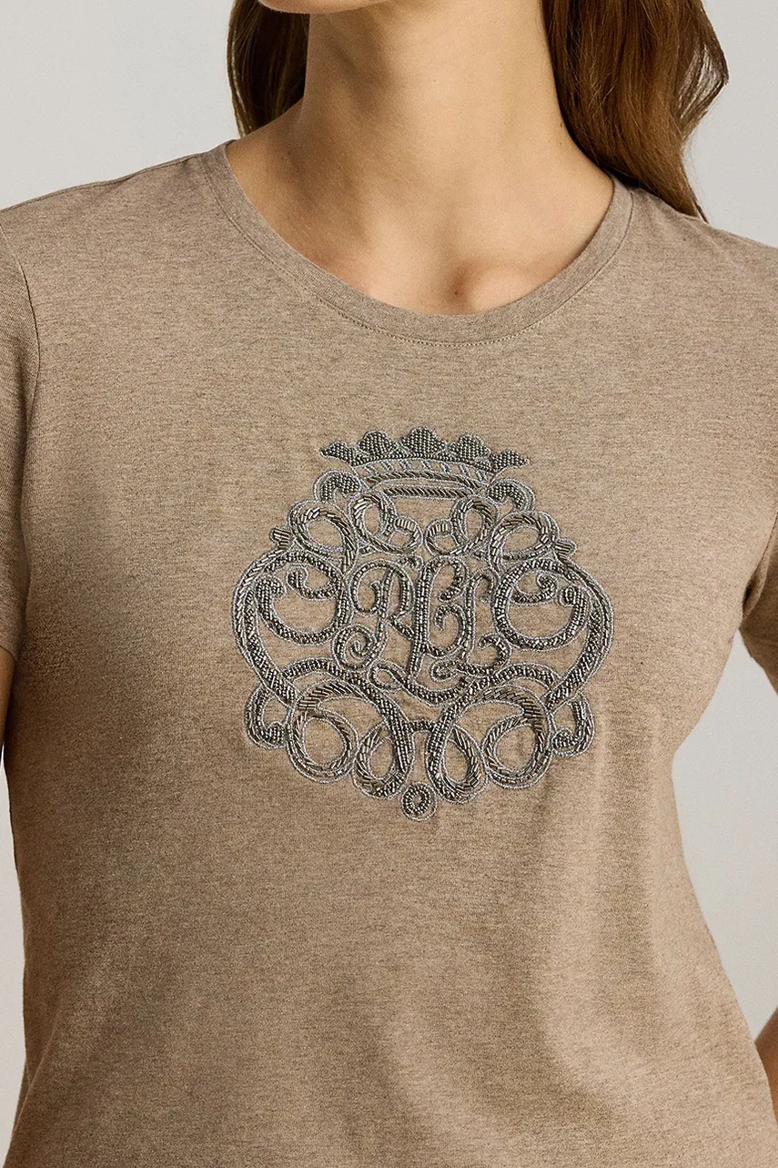 Lauren Ralph Lauren t-shirt bawełniany damski kolor beżowy 200980286